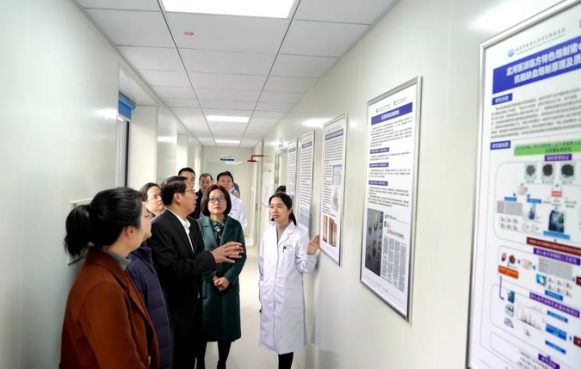 最后,各位领导和嘉宾参观了综合医学实验室,工作人员为大家详细介绍了中心的功能布局、设施设备、人员配备及工作开展情况。同时还参观了国家级中药炮制技术传承基地和国家中医住院医师规范化培训基地。